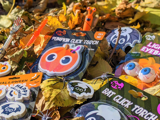Light up the spooky season with a Halloween Click Torch! Magnetic LED light torch Pumpkin design Great for trick or treaters!